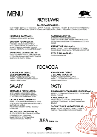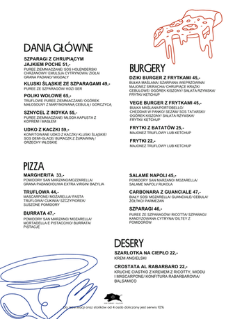 W naszej karcie menu znajdziesz pozycje idealne do dzielenia, dania główne z myślą o pozycjach mięsnych i wege, pizzę, burgery i wiele innych!